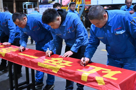 “让每一条轮胎成为精品,今天我向公司庄严承诺,不接受,不制造,不传递不良;严工艺,标准化,天天一个样;比学赶,善改进,稳步提质量;重执行,讲绩效,用心造精品。”2月15日, 一句句铿锵有力的誓言,从通用股份各分厂和车间传来,表达着各工厂员工为公司产品质量奋战,以质量强企,以“质”促“效”的决心和坚定信念。