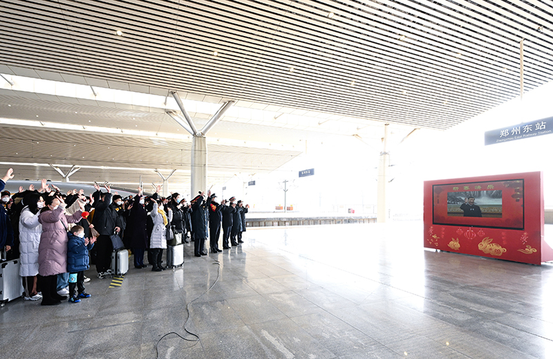郑州东站是我国最大的高铁站之一,今年春运期间预计旅客发送量337万人。习近平通过视频连线看望慰问铁路客运干部职工。在东站一站台,郑州东站站长汇报车站春运总体情况。习近平又详细询问车站现在每天的客流量是多少?防疫措施落实得怎么样?春运治安采取了哪些措施?嘱咐他们精心组织调度,严守安全底线,确保广大旅客安全出行。月台上的旅客看见总书记,争相赶到镜头前,向总书记问好。习近平亲切询问他们是回家过年还是外出旅游,叮嘱他们注意旅途安全。习近平指出,春运是关系人民群众切身利益、关系经济发展和社会稳定的一件大事。今年春运是疫情防控进入新阶段后的第一个春运,客流量大幅回升。交通运输部门要坚决贯彻落实党中央要求,提升保通保畅能力,确保人民群众平安健康出行,确保重点物资运输畅通有序。要坚持底线思维,加强对极端恶劣天气的监测和预警,深入开展安全隐患排查治理,坚决遏制重特大安全事故发生。要加强对出行相对集中的务工流、学生流的服务引导,确保他们节前安全返乡、节后顺利返岗返校。要严格落实各项防控规定,最大限度降低交叉感染几率,保障旅客身体健康。习近平强调,长期以来,交通运输系统的干部职工埋头苦干,担当奉献,功不可没。春节期间,许多同志要坚守岗位。习近平代表党中央,向交通运输系统的广大干部职工致以新春的祝福,并祝广大旅客旅途顺利。