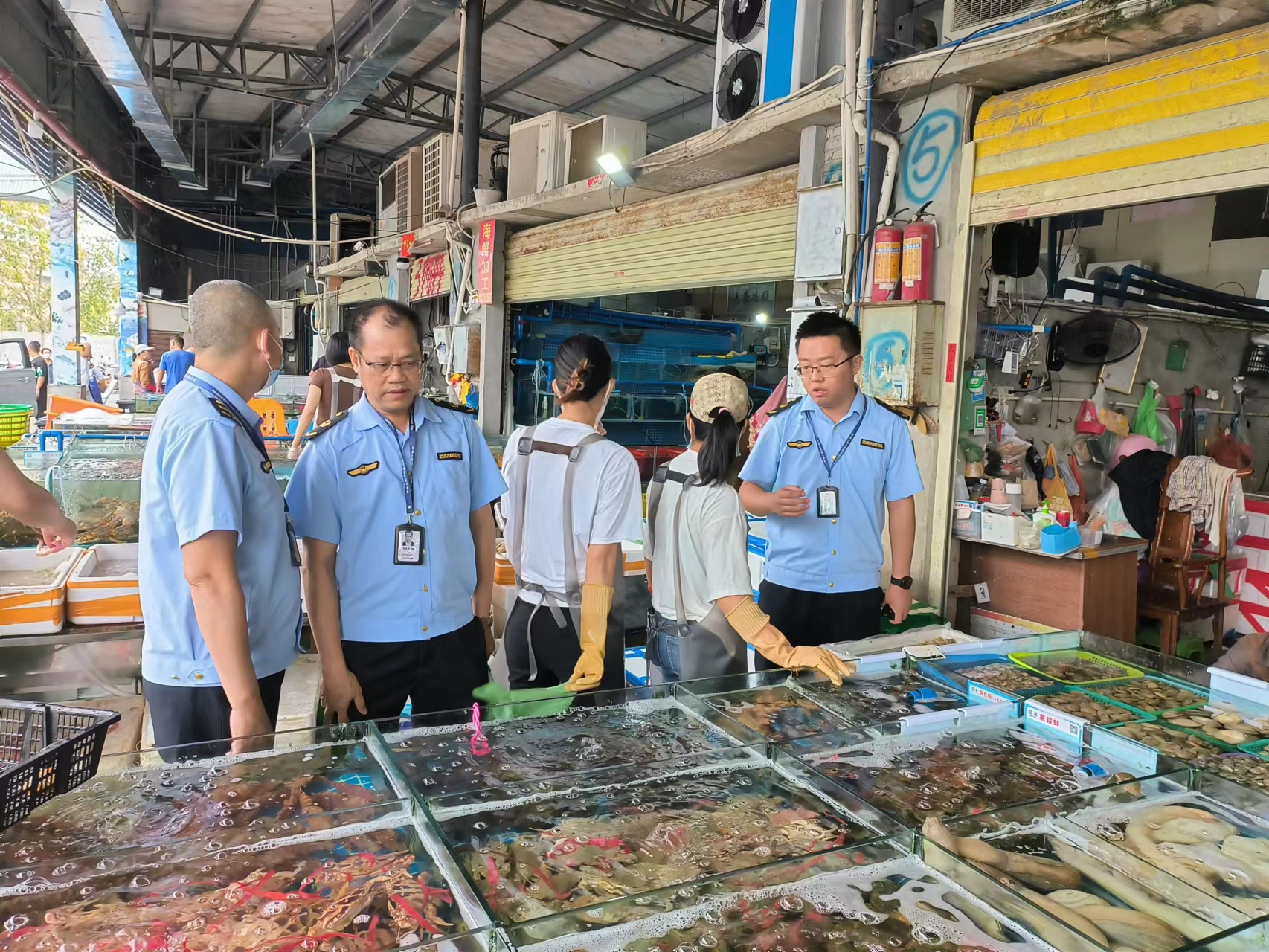 陵水英州金仙海鲜摊使用不合格计量器具案。2023年3月20日,陵水县综合行政执法局联合县市场监管局对英州镇英州农贸市场内正在使用的计量器具进行检查,发现陵水英州金仙海鲜摊摊主王某某使用的金煌牌电子秤无铅封、无合格证印鉴。经查,自2022年9月起,王某某在英州农贸市场冰鲜区003号销售冰鲜鱼,使用的金煌牌电子秤可通过输入“363”密码按“去皮”键进入作弊模式,再通过按单价1、单价2、单价3等按键增加所称物品重量,达到欺骗消费者、短斤少两的目的。当事人的上述行为违反了《海南自由贸易港反消费欺诈规定》《计量法》有关规定,2023年7月18日,陵水县综合行政执法局依法对当事人使用不合格计量器具的行为作出警告、没收金煌ACS-30电子计价秤1台、罚款2万元的行政处罚。
