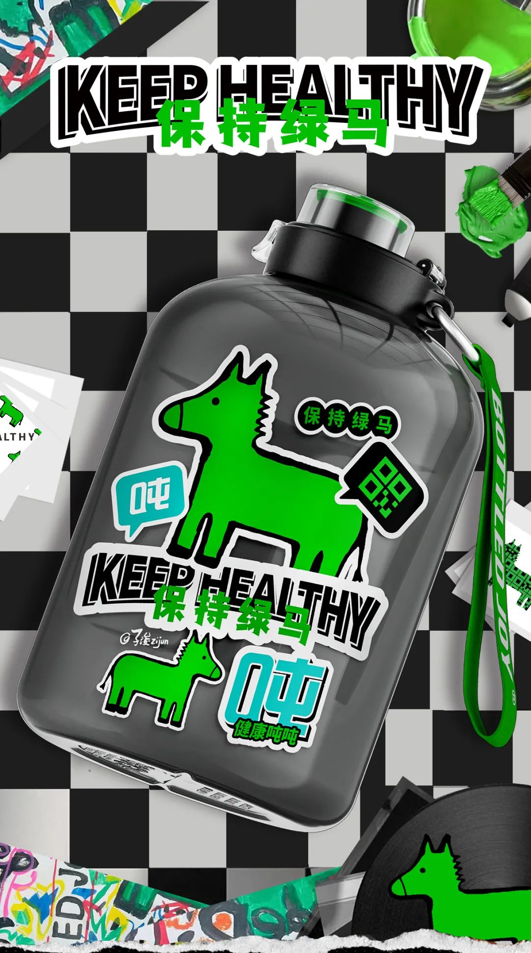 另外,它还叠加了不少外观上的新元素。例如具有专利的带把手的造型、新创的名为“蓝光玩家、草莓战士、酷绿少年、白驹骑士”等潮流颜色,以及“绿马”等复合当下潮流的图案设计。