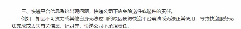条款3:快递平台信息系统出现问题,快递公司免除送件或退件的责任