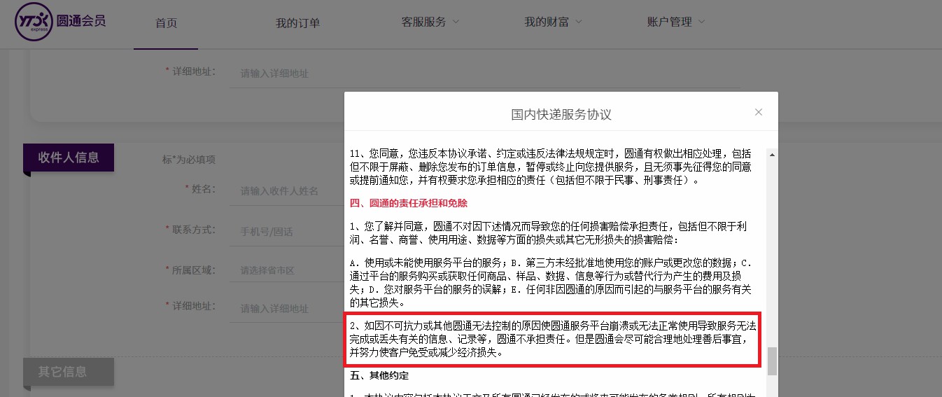 图3 圆通仍在使用被批评的不公平格式条款。