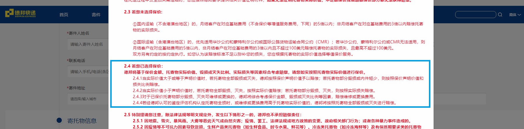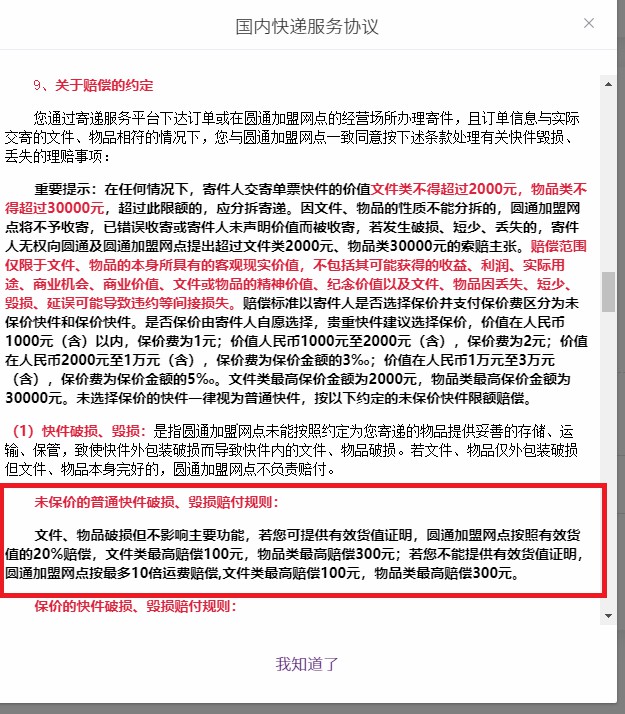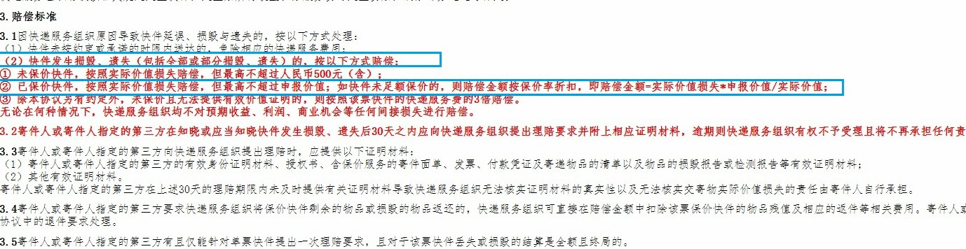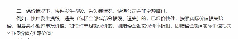 条款2:保价情况下,快件发生损毁、丢失等情况,快递公司并非全额赔付