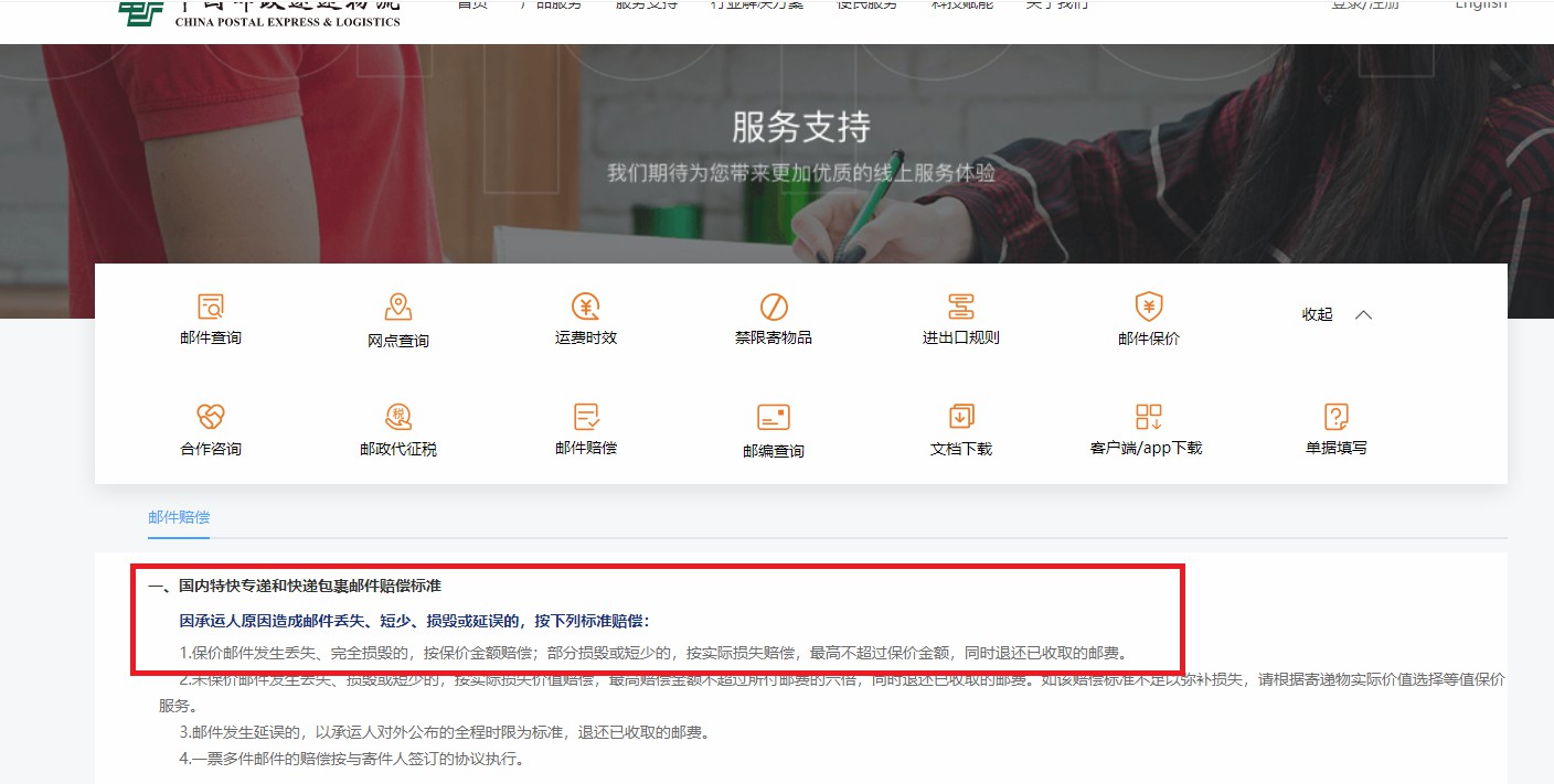 邮政EMS规定:保价邮件发生丢失、完全损毁的,按保价金额赔偿;部分损毁或短少的,按实际损失赔偿,最高不超过保价金额,同时退还已收取的邮费。