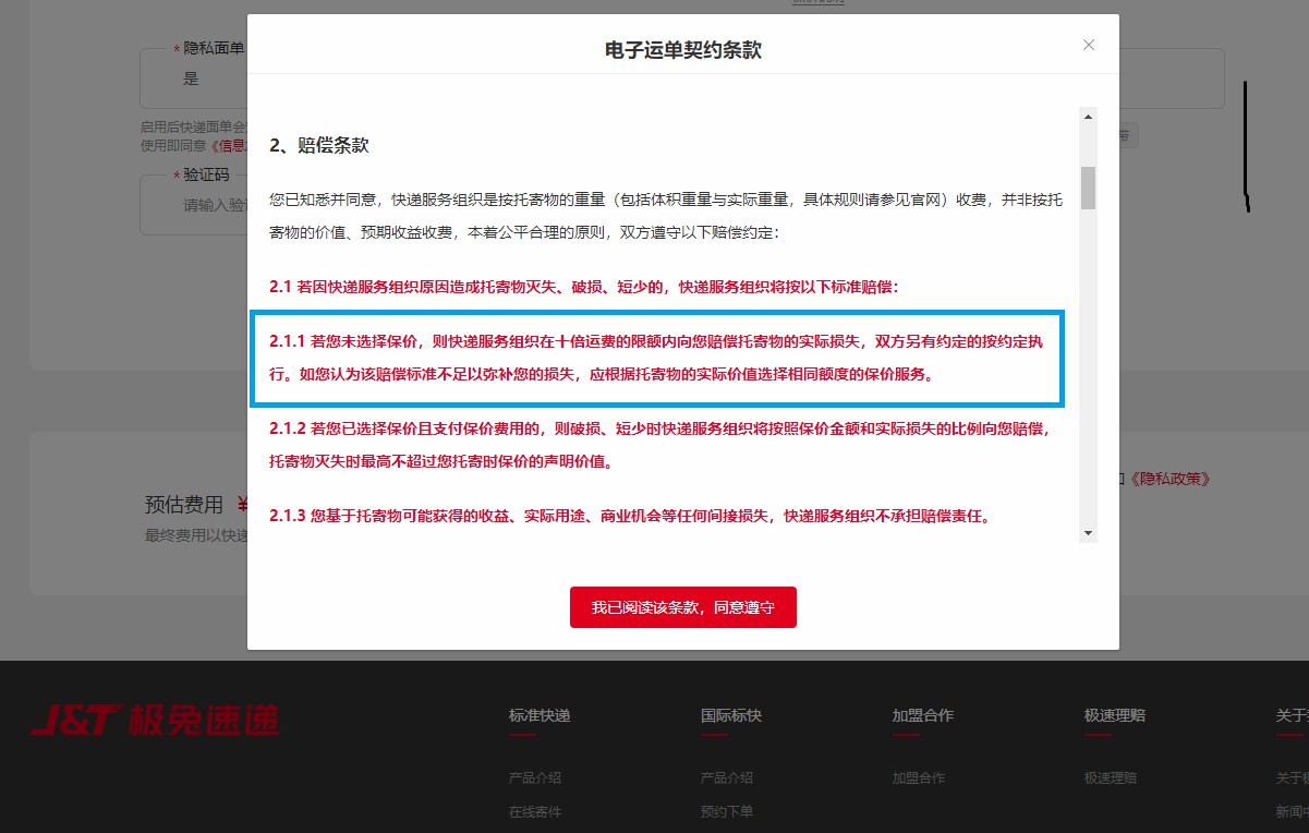 图6 极兔速递仍在使用被批评的不公平格式条款。