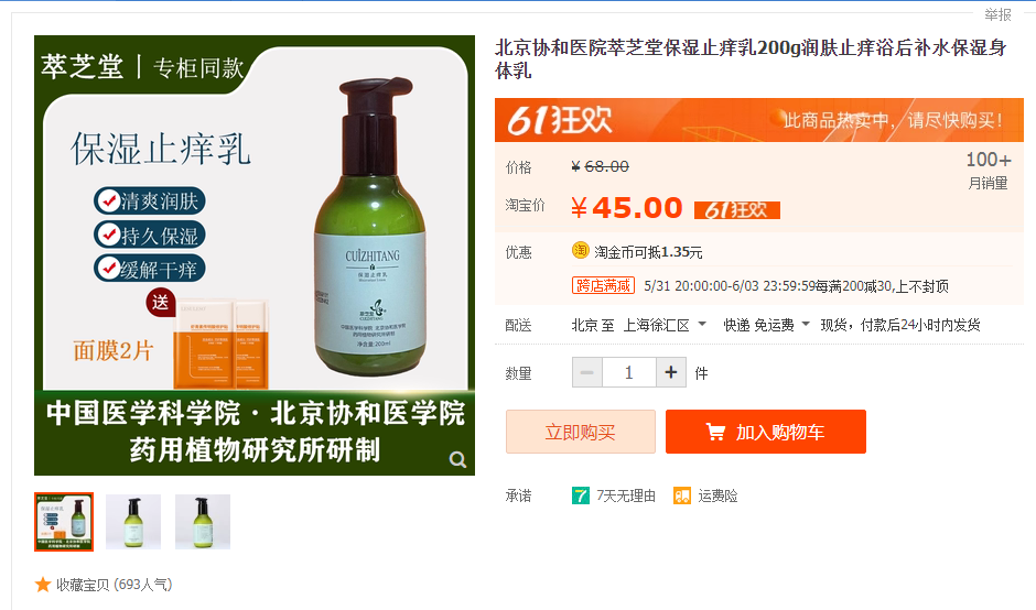 记者了解到,上海市消保委在社交软件上搜索时发现,有很多与科研院所联名研发的日化品种草视频。其中一款名为“萃芝堂保湿止痒乳”的商品,宣称由中国医学科学院•北京协和医学院药用植物研究所研制。上海市消保委于6月8日下单购买该款商品,6月12日收货后发现商品实物包装上印有非常明显的宣传字样。