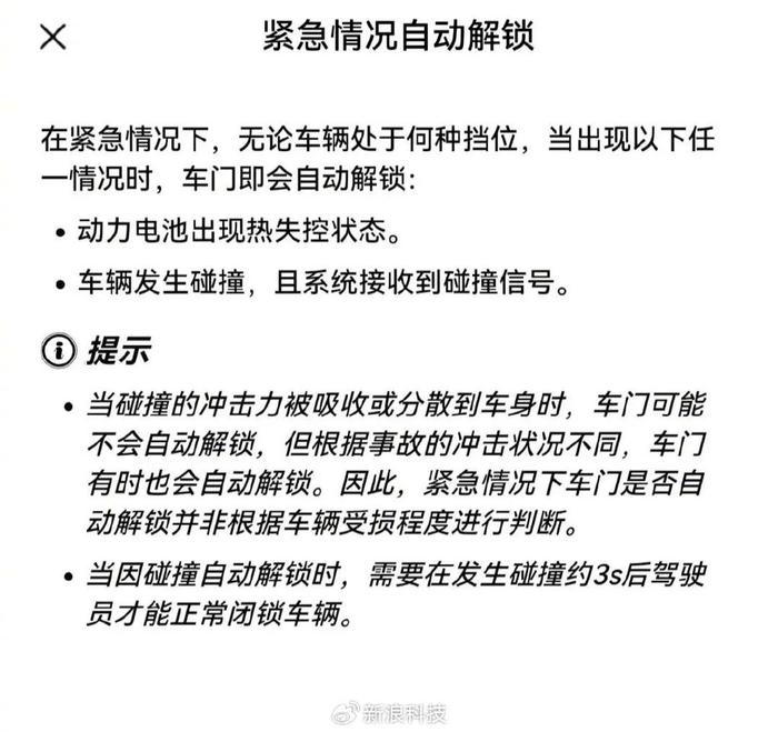 针对该问题,汽车行业分析师张旭告诉红星资本局,“有一个国标要求车辆碰撞后需要能够从内外打开,它定义的是结果,依我之见,应该算是对碰撞后自动解锁的强制规定。”