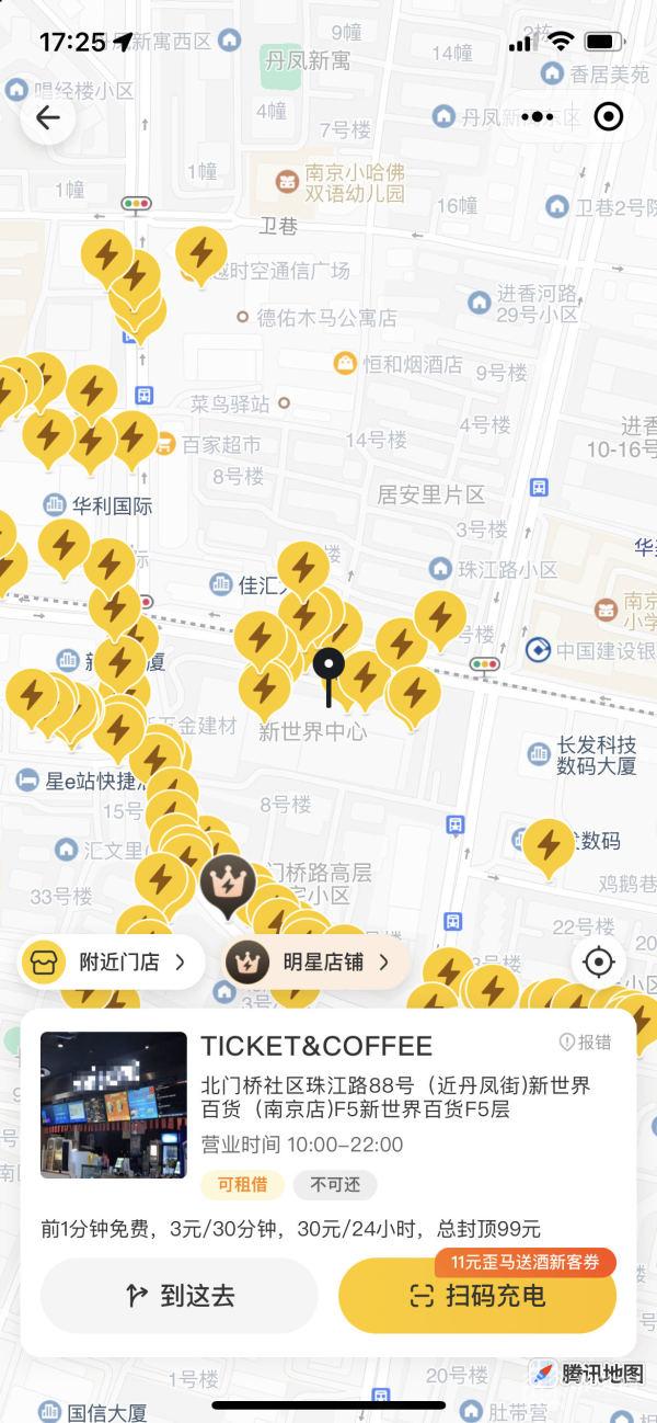 记者走访发现,南京新街口、鼓楼附近地铁站内,“怪兽充电”品牌的共享充电宝覆盖较多,通过怪兽充电小程序记者搜索发现,南京新街口商圈附近点位多为3到5分钟内归还免费,而每个点位每小时收费价格也不尽相同,多数价格为每小时4元,但以地图标注的新街口地铁站4号口为例,每小时价格达到6元。