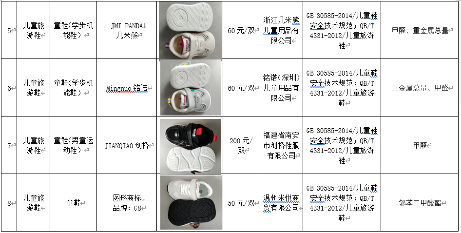 甲醛是一种挥发的化学物质,对人体感官有刺激作用,能在一定程度上抑制汗腺分泌等引发皮肤炎症。儿童皮肤比较脆弱,对甲醛尤为敏感,穿着含有甲醛的鞋子会导致皮肤过敏甚至过敏性皮炎。比较试验发现,标称品牌为“KUMI酷眯”“JMI PANDA几米熊”“Mingnuo铭诺”“JIANQIAO剑桥”4款样品该项目与标准存在差异。